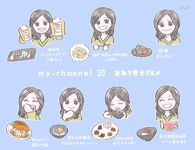 今年に入って描いた『my channel』イラストまとめ🍚📱🍭⛳