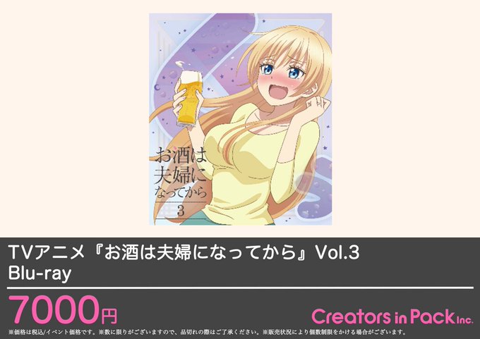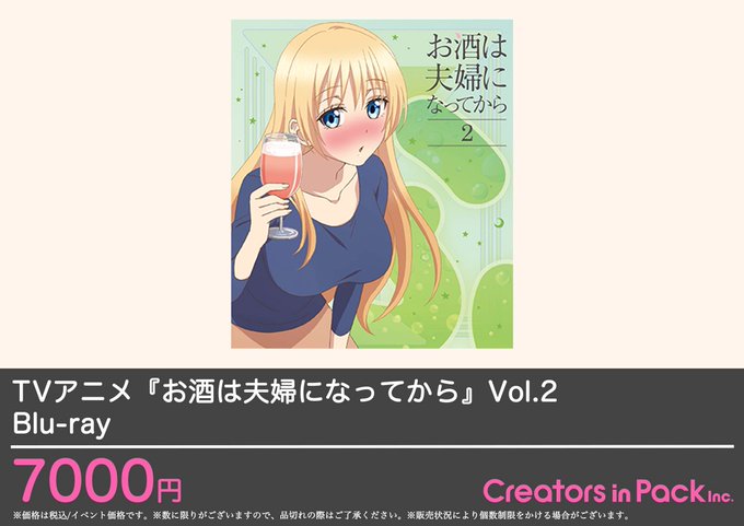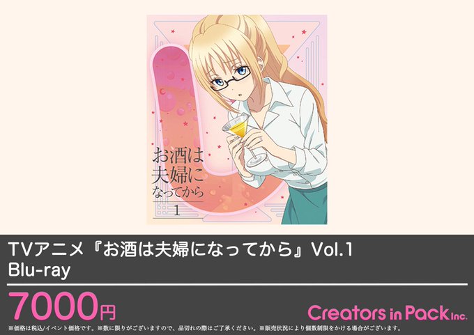 マチ★アソビVol.20のCreators in PackではTVアニメ『お酒は夫婦になってから』のBlu-ray Vol.1〜3を販売いたします!