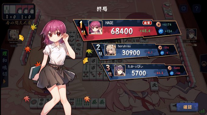 下家無視して山越しロン狙ったり、ラス1の9sでこの人に上がらせないマンしたけど全部かわされたけど、一度ロン上がりできたし勝てたので満足!!!!!!