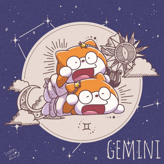 「ふたごきんぽくん🐱🐱」 #1日1きんぽ #イラスト #星座