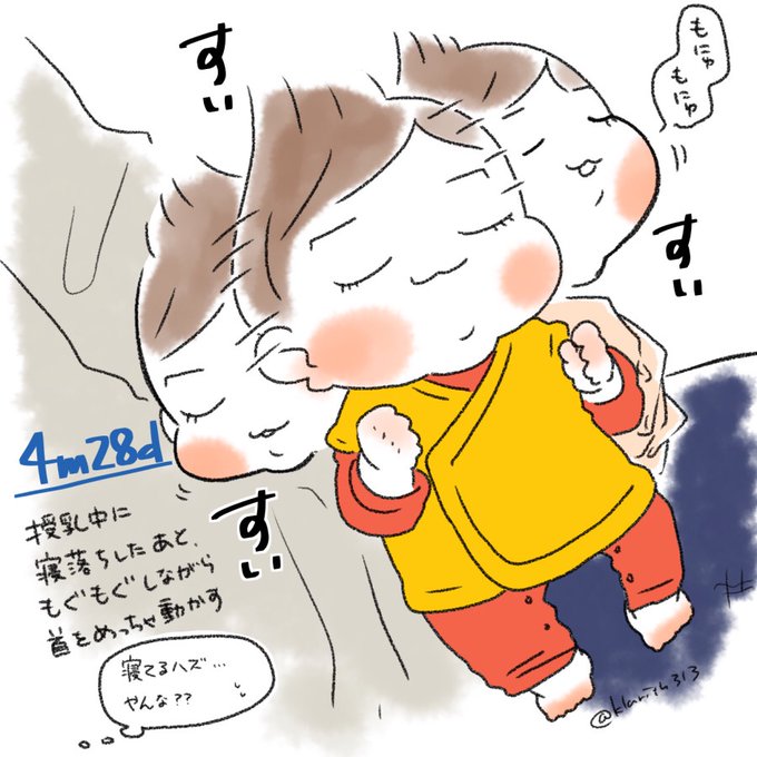 寝ながらおっぱいを探しているらしい #くらたけの娘さん