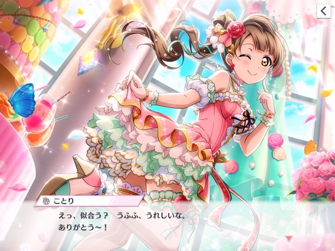 「月がきれいだね。ことりが着ている、はんなりこまちと言う、衣装だけど、似合う?」