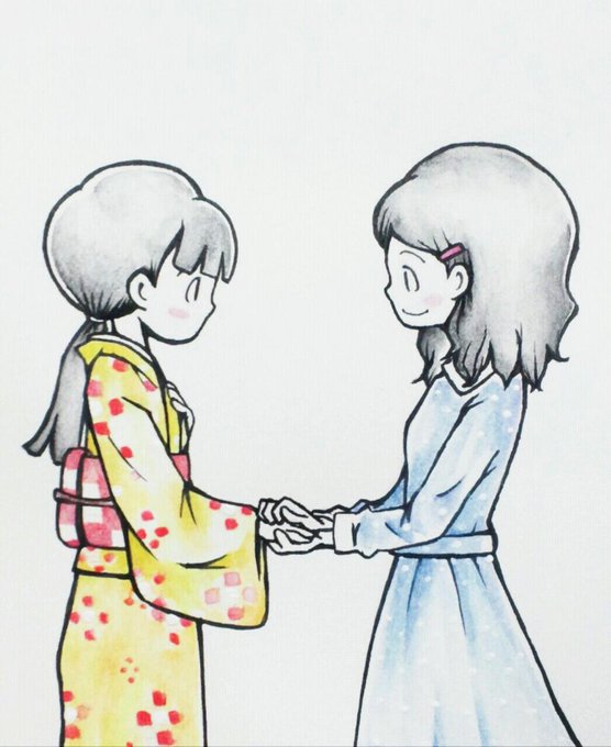 百均で買ったスケッチブックをお試し。少しなら水使っても大丈夫そう(・ω・) 希子ちゃんと希子ちゃん。 #ごち絵 #ごち絵美術館