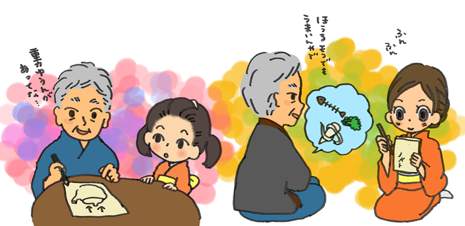 正蔵さん、め以子・ふ久親子の師匠になってくれてありがとう #ごちそうさん #ごち絵 #ごち絵美術館