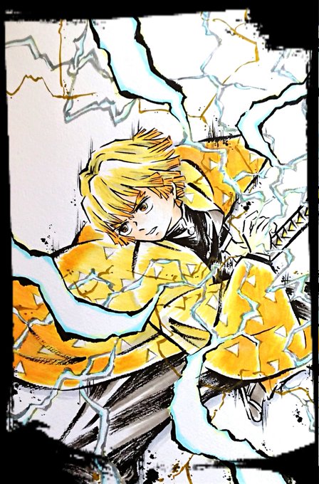 #ぜんちゃんカウントダウン ⚡🎂まで、あと3日💕 今回は墨絵編🖌️😊 (なぜか⚡は墨絵ではあまり描いてない🖌️🤔)