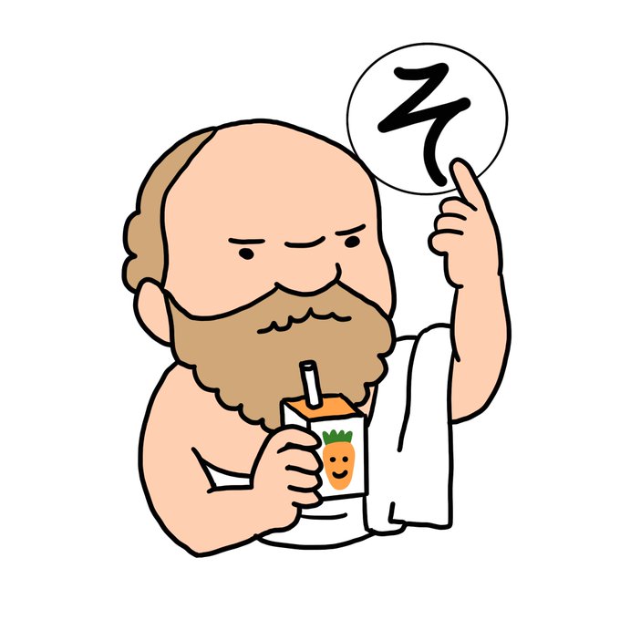 今日はソクラテスだよ!哲学者と言ったらソクラテスだよね✨にんじんジュースを飲んでるよ。昨日に引き続きぼかした表現をしているのはTwitterポリシーを守るためだよ☺明日はたのつく哲学者だよ。当ててみてね✋ #哲学者あいうえお