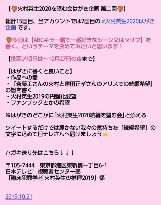 【📮第5回 #火村英生2020はがき企画📮】