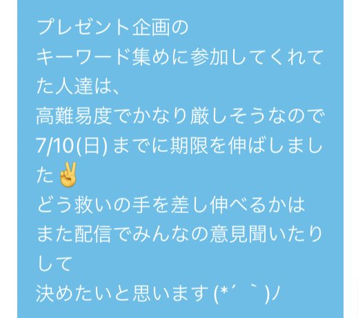 昨日の!なかなか最近ゆっくりお話できなくてごめんね、、今日は時間あるのでお話したり歌ったりしたいと思います🥰たくさんの応援ありがとう、明日が最後かあ、、、