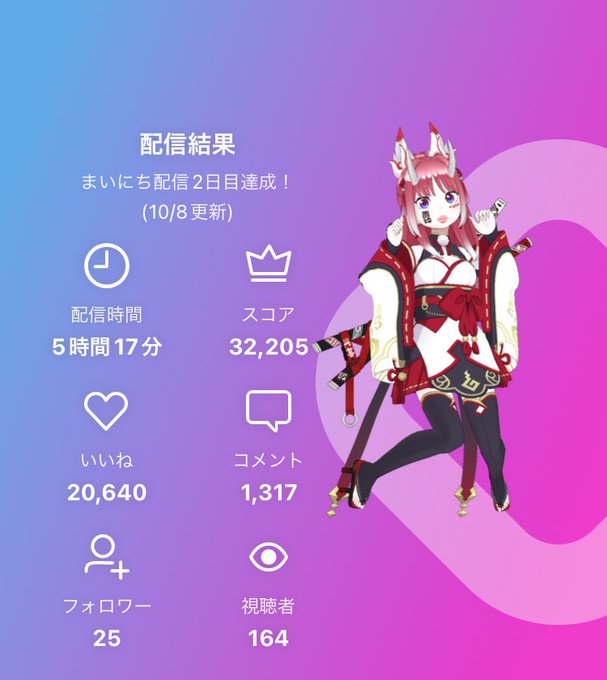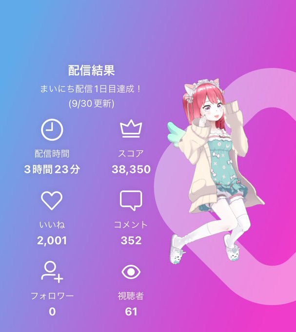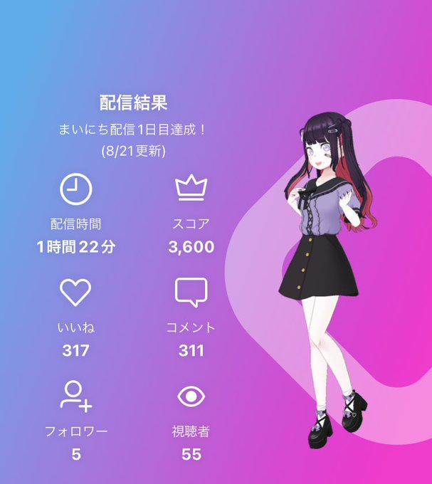 昨日のまとめるだけまとめてツイし忘れてたよ!?本当に沢山の応援ありがとうございました🙇🏻♀️このまま頑張って3位以内キープしたい😭今日のラスランは21時半頃からチェキ会をしたいと思ってます!!お気に入りの服・エモート付けて遊びに来て下さい!待ってるね〜!!