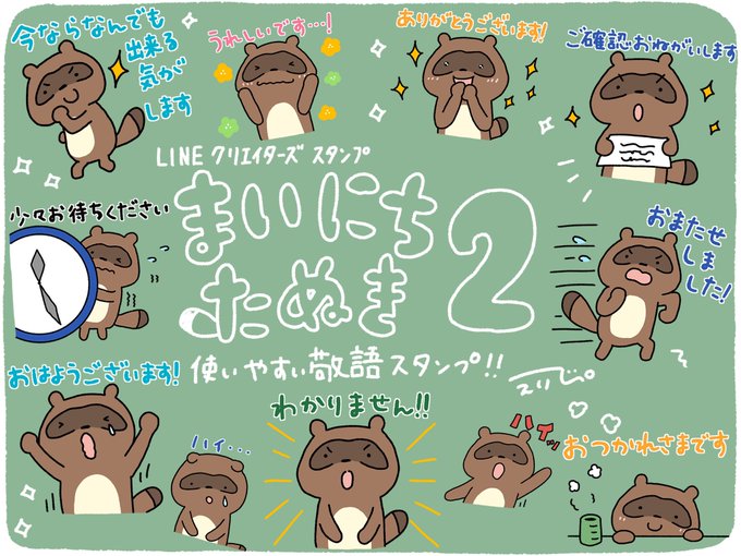 LINEスタンプ「まいにちたぬき2」発売いたしましたー!!今回は敬語ですー!!