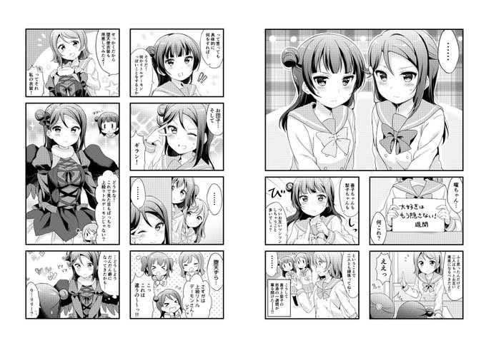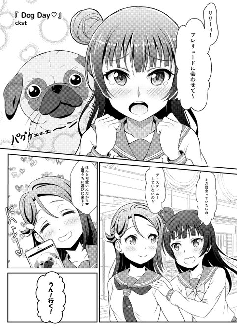実は一つ前にあげたよしりこ漫画で描いた梨子ちゃん(右絵)は「全身」描いててコマの構成上泣く泣く削ったのを描き直して1枚絵にしてみました‼😸やったね🎵
