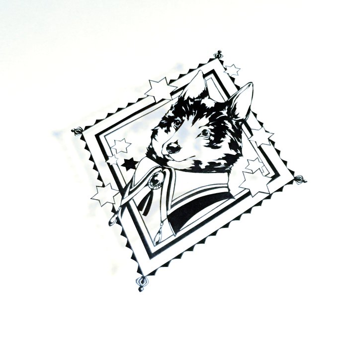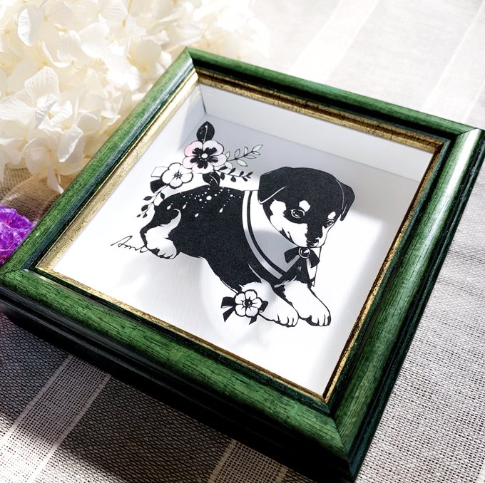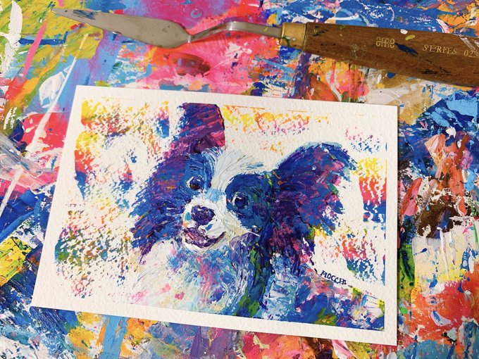 耳毛がそよいでバーコードになってるのになぜだかかわいいワンコさん😍💕以前描いた絵も一緒に🖼
