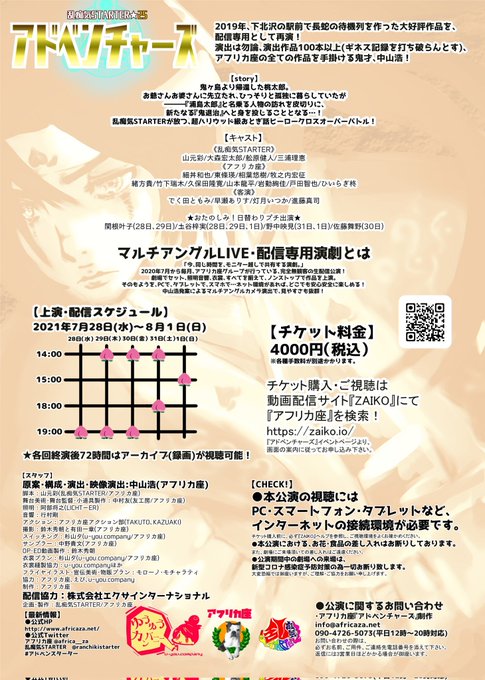舞台配信『アドベンチャーズ』ゥゥ!!明日までだぜェェェ!!!終わっちまうゼェェェェェェ!!!!
