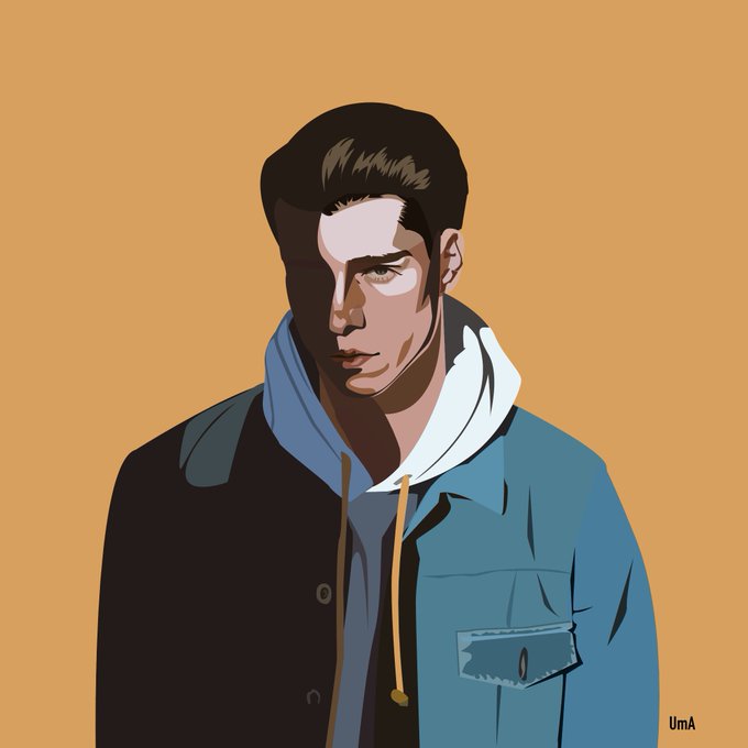 とりあえず半分(仮) 12月迄にはもうちょい小物足したり諸々仕上げる... (気持ち的には) そしてあと2人+αも頑張りたい... (気持ち的には) #うしあーと🐮 #まゆうあーと🐬 イラレでお絵描きなかなか大変だな_(」∠ 、ン、)_ そして世代ががが🙃