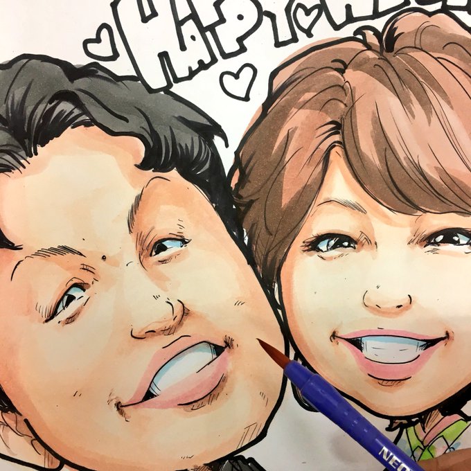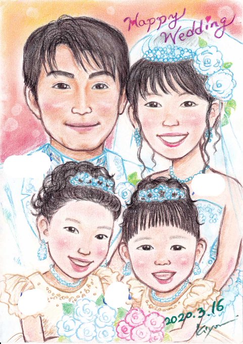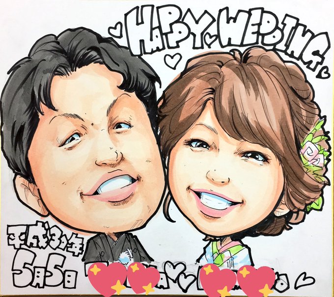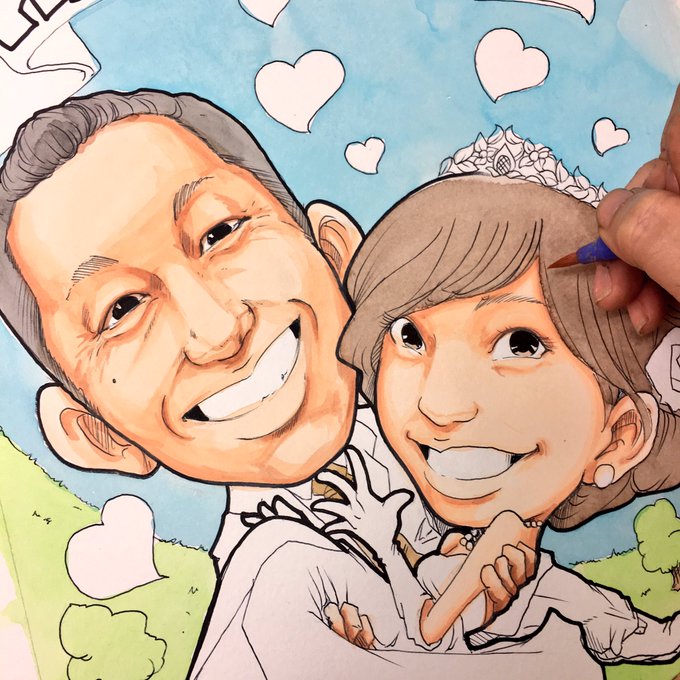 ウェディング似顔絵のお客様、経過ツイートです(^O^)