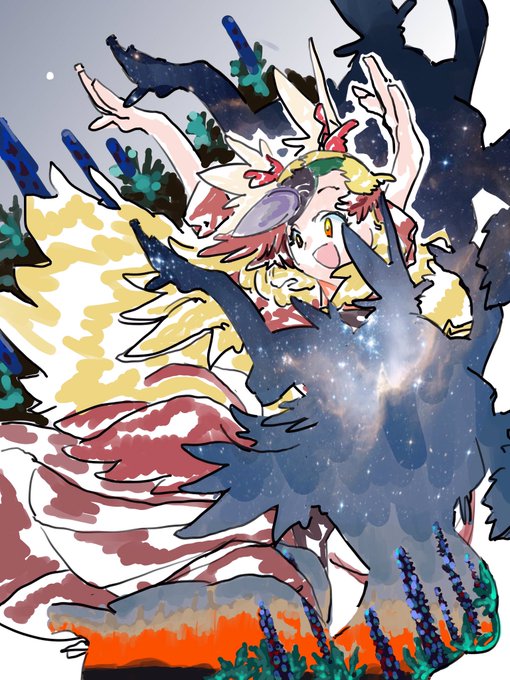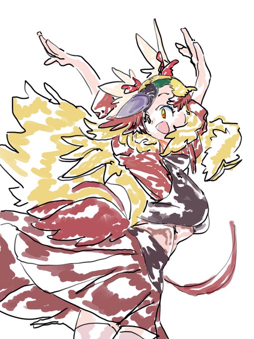 今日の落書き いいことがあったら踊ろう! #けものフレンズ #落書き そんなわけでオオフウチョウちゃん 一時間で終わるわけがない華やかな色味が素敵です!