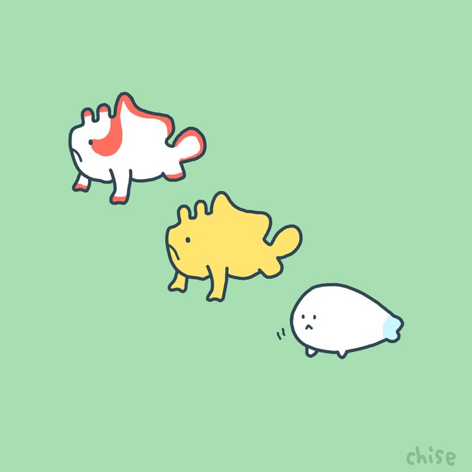 1、2枚目はカエルアンコウ擬人化、3枚目はホウボウ擬人化とアカウミガメです。