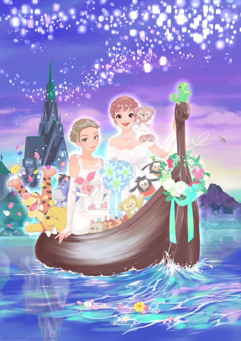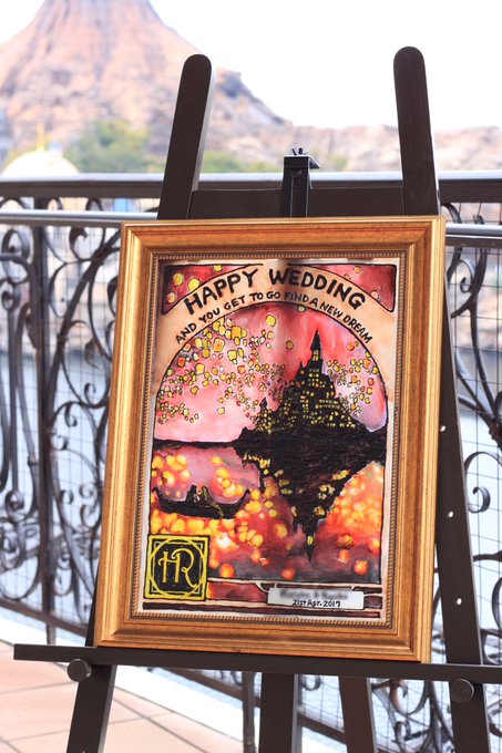 友人がガラス絵の具で描いてくれたラプンツェルのウェルカムボード。日に透けるとスゴく綺麗!