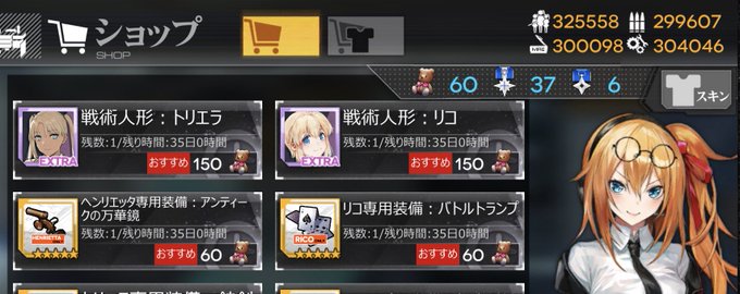 少前ガンスリコラボ、最初のマップクリア後アンジェリカ手に入ったので確定報酬かと思っていたのですがよく見たら単に運良くドロップしただけみたいですね;