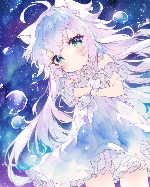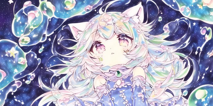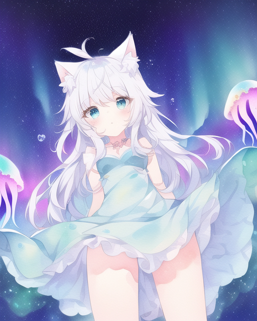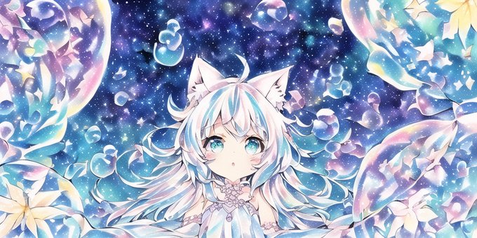 あめ色にゃんコード:007 #猫耳 #NovelAI #AI #NovelAIDiffusion #泡 #透明水彩風 #コピック風 #くらげ https://t.co/oeY9qrczpL