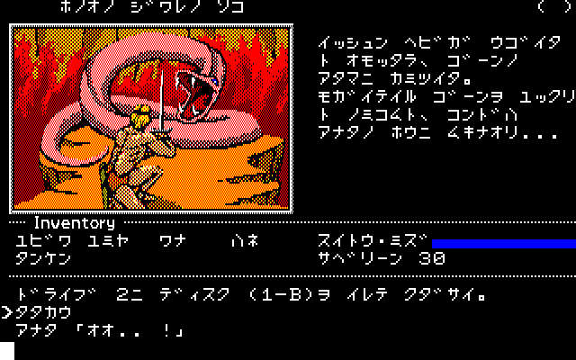 海外移植物のADV。前作の相棒ゴーンと共にリサを救いに行く話。移動は8方向で位置が把握しにくい上、戦闘から逃げると迷ってしまう。露出高めの女性が出て来るが、麗しさより寧ろたくましい…。