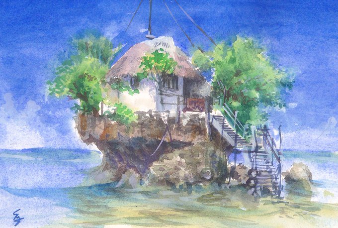 2022年6月12日開催は、《風景画レッスン》「海の上の古民家風レストラン(タンザニア/the rock restaurant)」