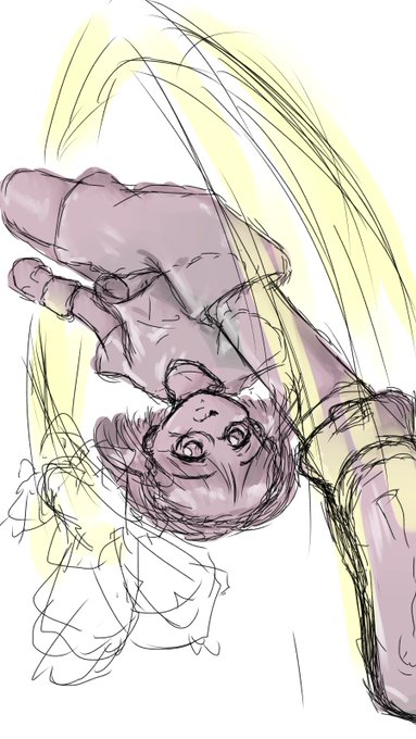 「前後感強調構図」×「逆さま構図」= サマーソルトキックじゃね?と思い、ラフまで仕上げてみた!