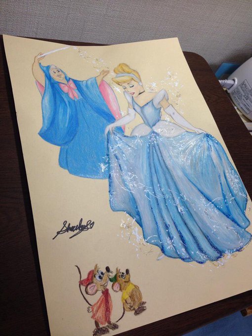 3年前に描いたのと、ついこないだ描いたもので、#シンデレラスクリーンデビュー をお祝いしたいと思います🙌🏻💕