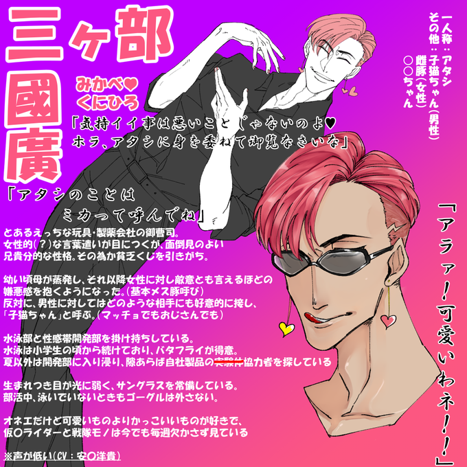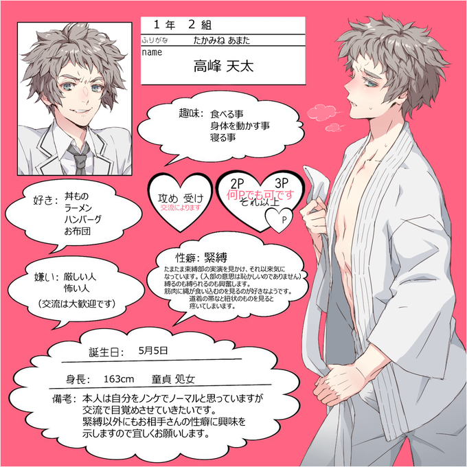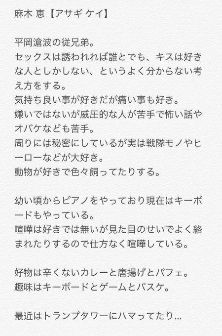 受け寄りのリバで根暗の精神ドMだけど愛に飢えてるというめんどくさいやつですが、オジさん以外の人との関係はまだないのでよろしくしてやってください。