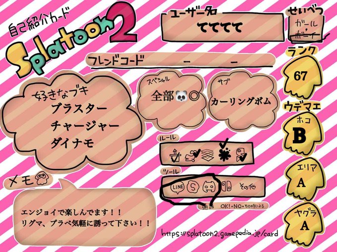 #スプラトゥーン2自己紹介カード #スプラトゥーン2フレンド募集中 #スプラトゥーン2やってる人と繋がりたい