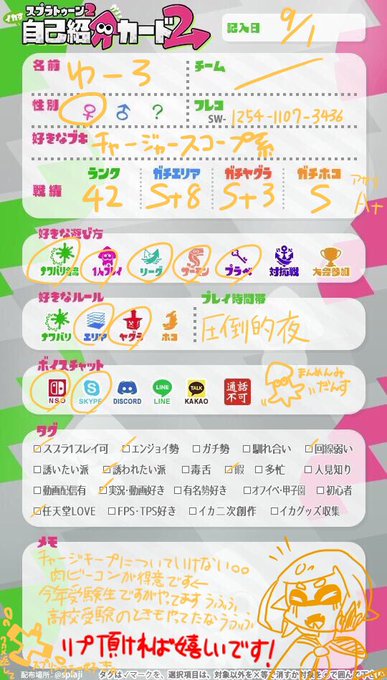 #スプラトゥーン2自己紹介カード