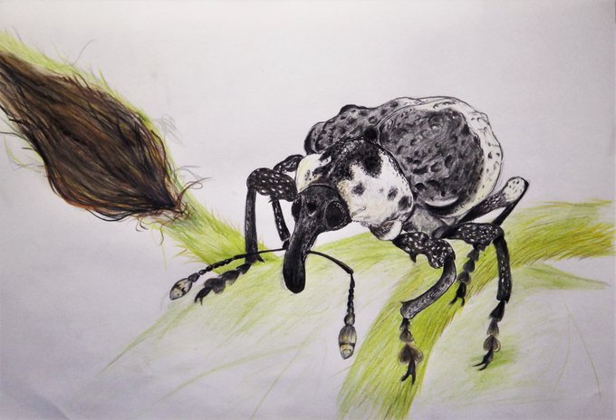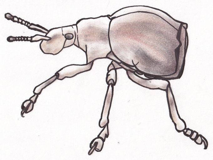 一番上はゾウムシではなくイネクビボソハムシ。幼虫は背中に泥をかぶって身を守るためドロオイムシの名で呼ばれる。このハムシはイネの葉をしょくがいする。どちらかというと寒冷な地域に多い。この仲間は人気があるみたい