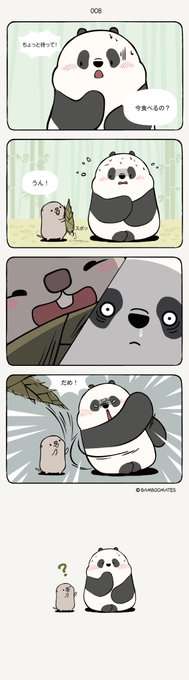 食べても食べても物足りないパンダが心理戦を仕掛けます。でも素直なタケネズミには通じない?