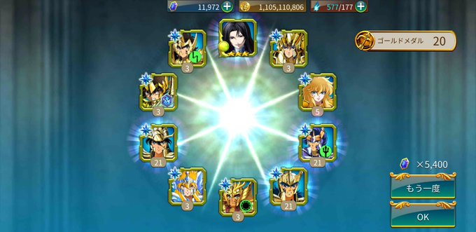 10連ガシャでΩ聖衣光牙を☆4で入手しました。なかなか性能が良かったキャラなので、これは嬉しいです。