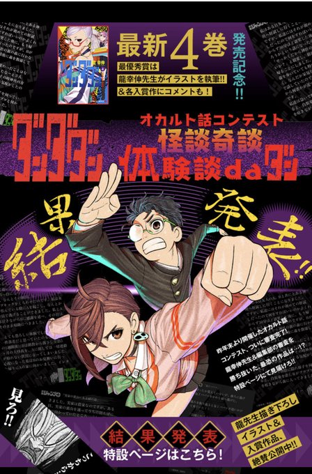 『ダンダダン』コミックス最新4巻本日発売❗️怪談奇談体験談daダンの結果発表はジャンプ+にて✨