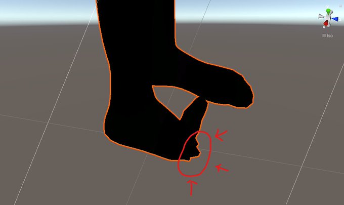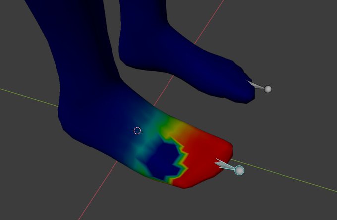 トラスちゃんV3改変途中で、おかしいな問題が気づきました。Toes.Rを曲がったら、下の写真のようになる。blenderでTolass3.0.fbxを覗いてみたら、Toes.RのWeight Paintは穴があった。穴を塗ったら、問題が直ったみたい。