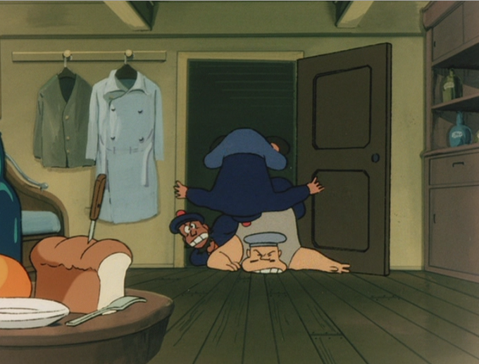 ダイスの強烈な個性を決定付けた、話しながらコロコロ変わる芝居。船長室のご馳走を食い散らしつつ喋るダイス、ドンゴロスらの盗聴など『#天空の城ラピュタ』ドーラ一家の「あのシーン」は高畑コンテとの化学反応の成果かも。