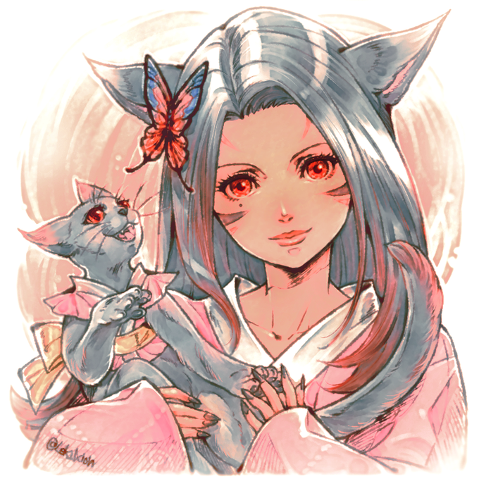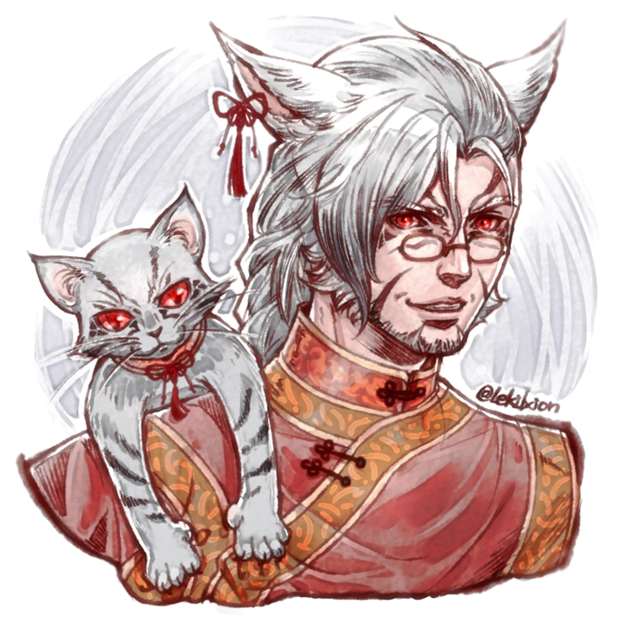 今回は【Z Uhland❖Aegis @zzz_FFXIV 】さんにモデルをお願いしました。渋くて素敵なハイランダー男性でしたので猫は大型の長毛種になりました。気に入っていただければ幸いです!