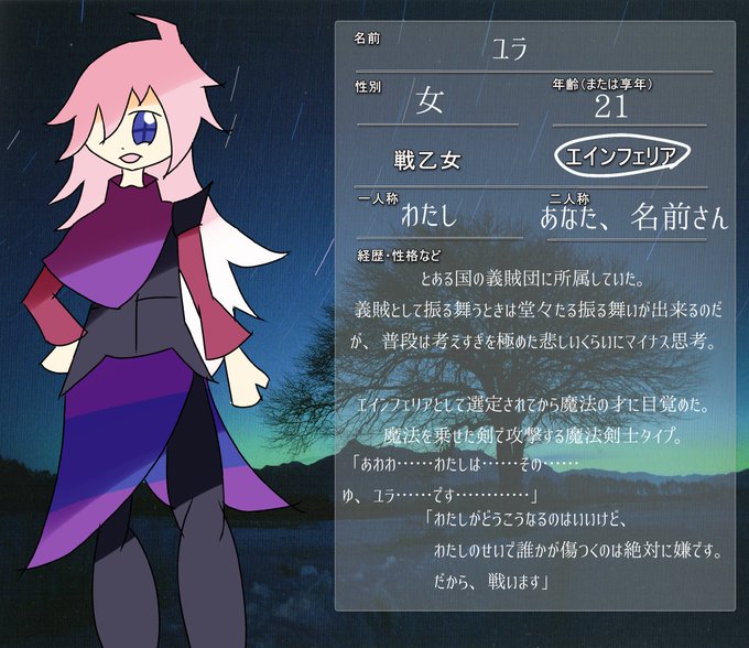 ニーベルンゲンの詩( @pkapkamoimoi )企画様に五人目!マイナス思考考えすぎ覚悟決まり気味エインフェリアさん!