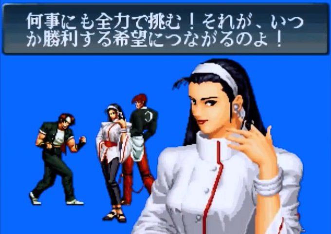 ネスツ編を除けばKOFシリーズの主役的なチームなのに、いかんせん神楽ちづるの参戦履歴が芳しくない為、なかなか実現しないチーム