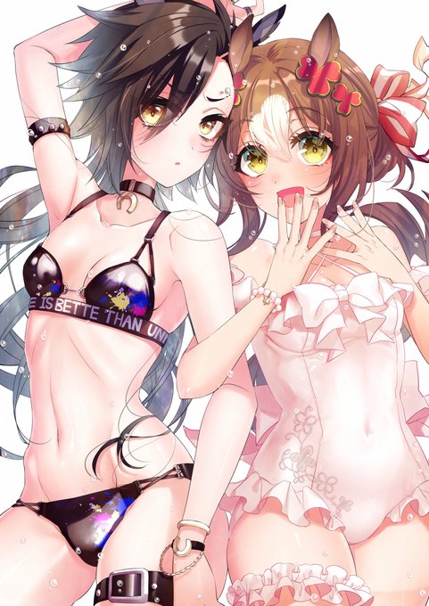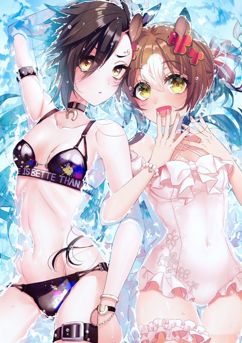 水着ファイシャカ差分 #ウマ娘プリティーダービー #エアシャカール(ウマ娘) #ファインモーション(ウマ娘) #水着 https://t.co/qlDwiHE2Xf