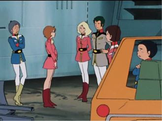 地球連邦軍の制服はこの柄もあるんだけど、このタイプの制服は採用している部隊が少ない。ランバ・ラルも部下から「こいつ(フラウ・ボウ)の着ているのは連邦軍の制服です」って言われても「そうかな? ちょっと違うぞ?」と言っちゃうぐらいには一般的じゃないんですね。まぁ生足ミニスカだしねー。