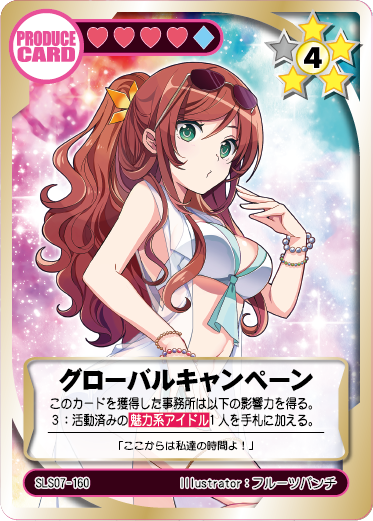 世界的な商品展開と広告キャンペーンに起用!様々な国で登壇が期待されます。魅力系アイドルが手札に戻せる強力なプロデュース!