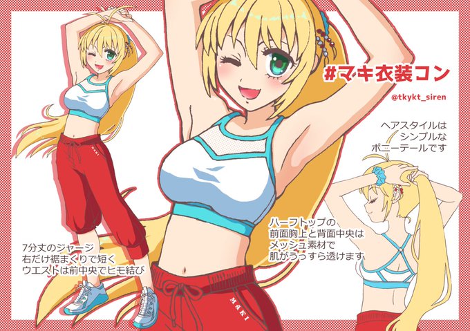 #マキ衣装コン 🎨ギリギリですが参加させていただきます。ハーフトップ×ジャージ×スニーカーでシンプルに、トレーニーなマキさんです。 リプ欄に中二心をくすぐられる(と思う)ブラックバージョンも投稿しておきますので、併せてどうぞご覧ください。