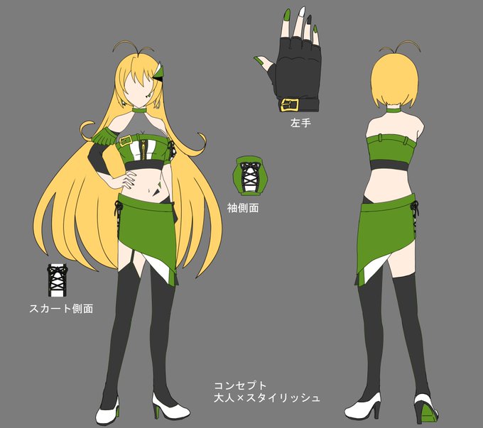 弦巻マキさん衣装デザインコンテスト2点目。オフ寄りのマキさんをイメージしました。辛口な衣装もまた別の一面が見えるのではないかと…。 #マキ衣装コン