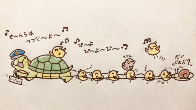 過去に描いた鉄道っぽいイラスト2枚!電車ごっこみどりちゃんと、電車でどこかにお出かけするマフラーマン&みどりちゃんです🚃🎶🐢