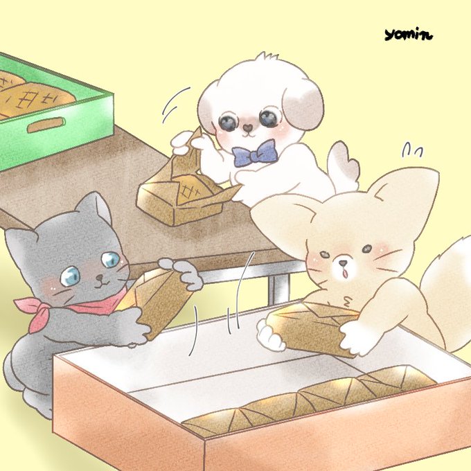 みんなにプレゼントするキャラメルを、ぼくたちで梱包したよ🐶🎁