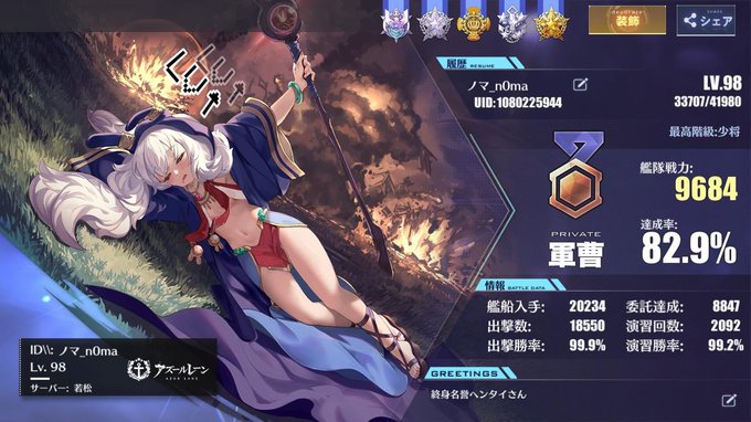 #メンテなのでアズレンプロフィールを無言で貼る