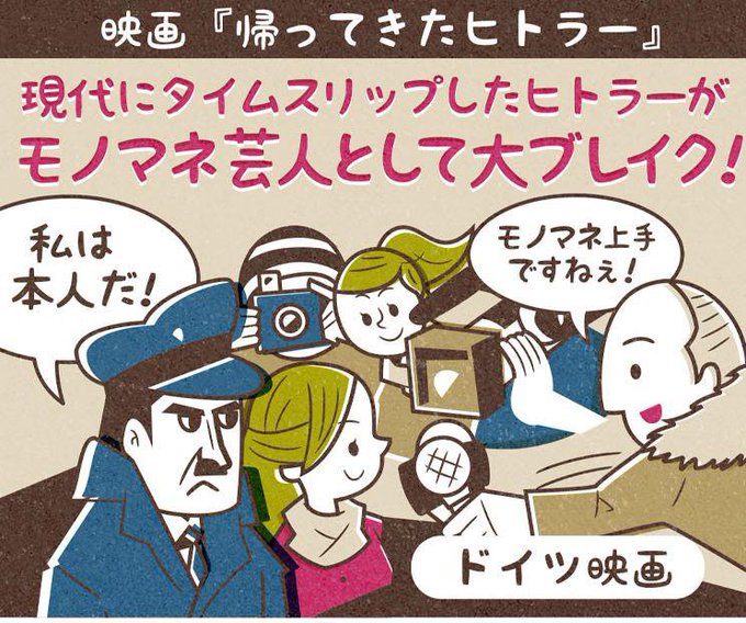 ヒトラーが現代にタイムスリップしてきてモノマネ芸人としてブレイクし、再びドイツの支配を目論むという映画「#帰ってきたヒトラー」
