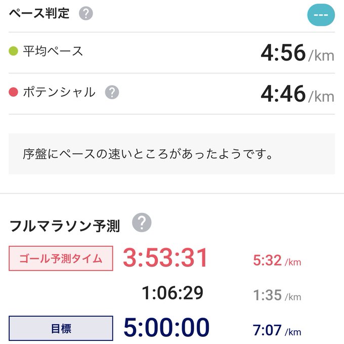 今日は、ランメトリックスをいろいろ試しました。長い時間を速いペースで走ったときが1番点数が良かったです。けど、予想タイム3時間53分。目標5時間!うーん、もっと頑張ろう💪 #ライブラン #liverun #バナソン #BANATHON #サスラン #ランメトリックス